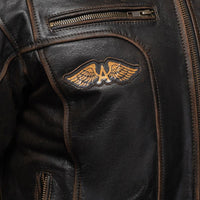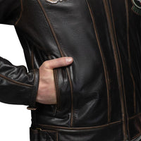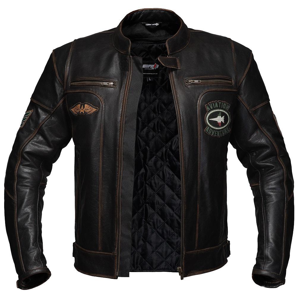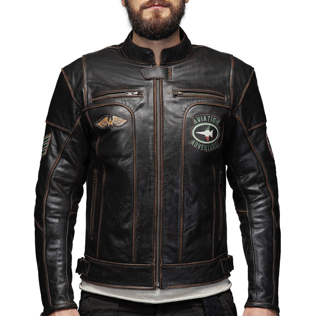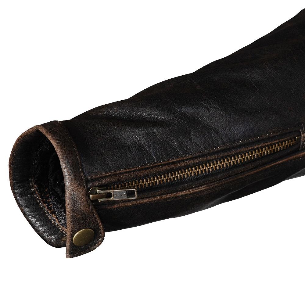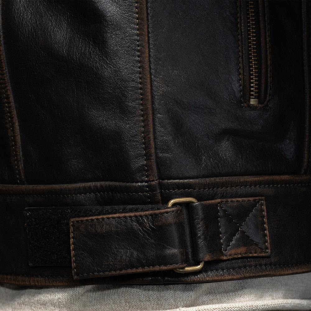 Această geacă din piele moto în stil retro, inspirată de aviația italiană, îmbină perfect stilul și calitatea și oferă confort și protecție în toate cele patru anotimpuri. Pielea de bizon cu aspect deteriorat iese în evidență prin caracterul său și arată mai bine cu timpul.