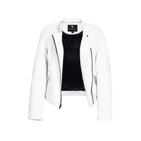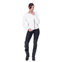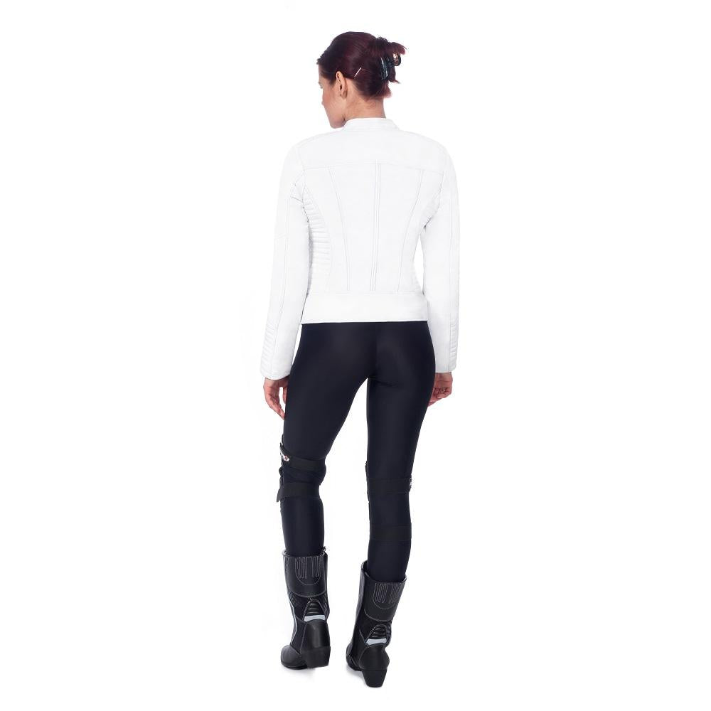 Înviorează-ți stilul cu cea mai bună geacă albă moto de damă - elegantă, incisivă și protejată complet pentru orice aventură. Este la fel de bună pentru motociclism ca și pentru o seară în oraș.