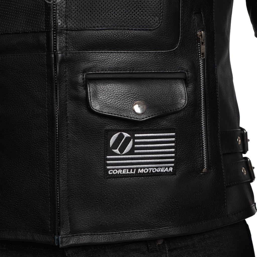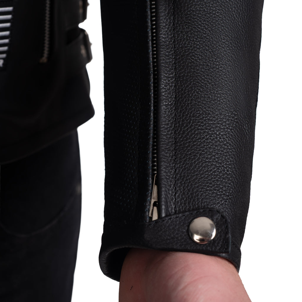 - piele bovină de calitate premium de 1,2 mm, cu față naturală, parțial perforată pe piept și pe mâneci