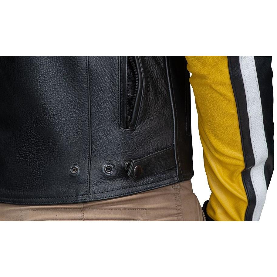 Această geacă de piele moto cu clasă, cu protecție CE, are un sistem de ventilație cu flux de aer care oferă un confort de neegalat la drum, pe vreme caldă sau foarte caldă.
