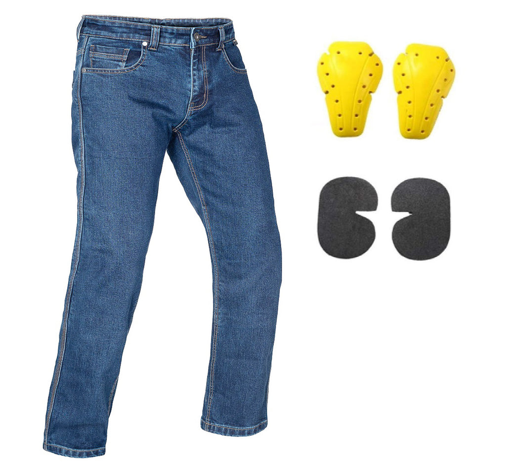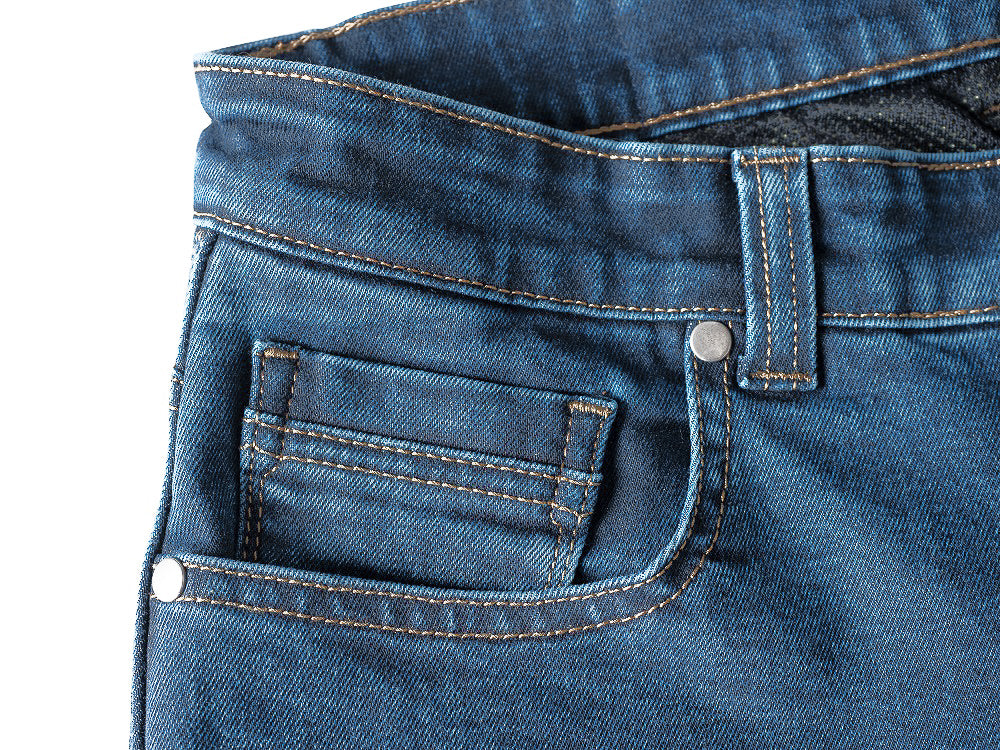 Descoperă protecția imbatabilă oferită de armătura din fibră DuPont™ Kevlar® (de cinci ori mai rezistentă decât oțelul), același material folosit în uniformele militare de luptă, disponibil exclusiv în blugii noștri clasici de nouă generație. Aceștia sunt luxos de moi, ușor elastici și se simt ca blugii obișnuiți. Protecțiile CE abia se observă, dar sunt acolo pentru a te apăra împotriva unei alunecări sau căderi.
