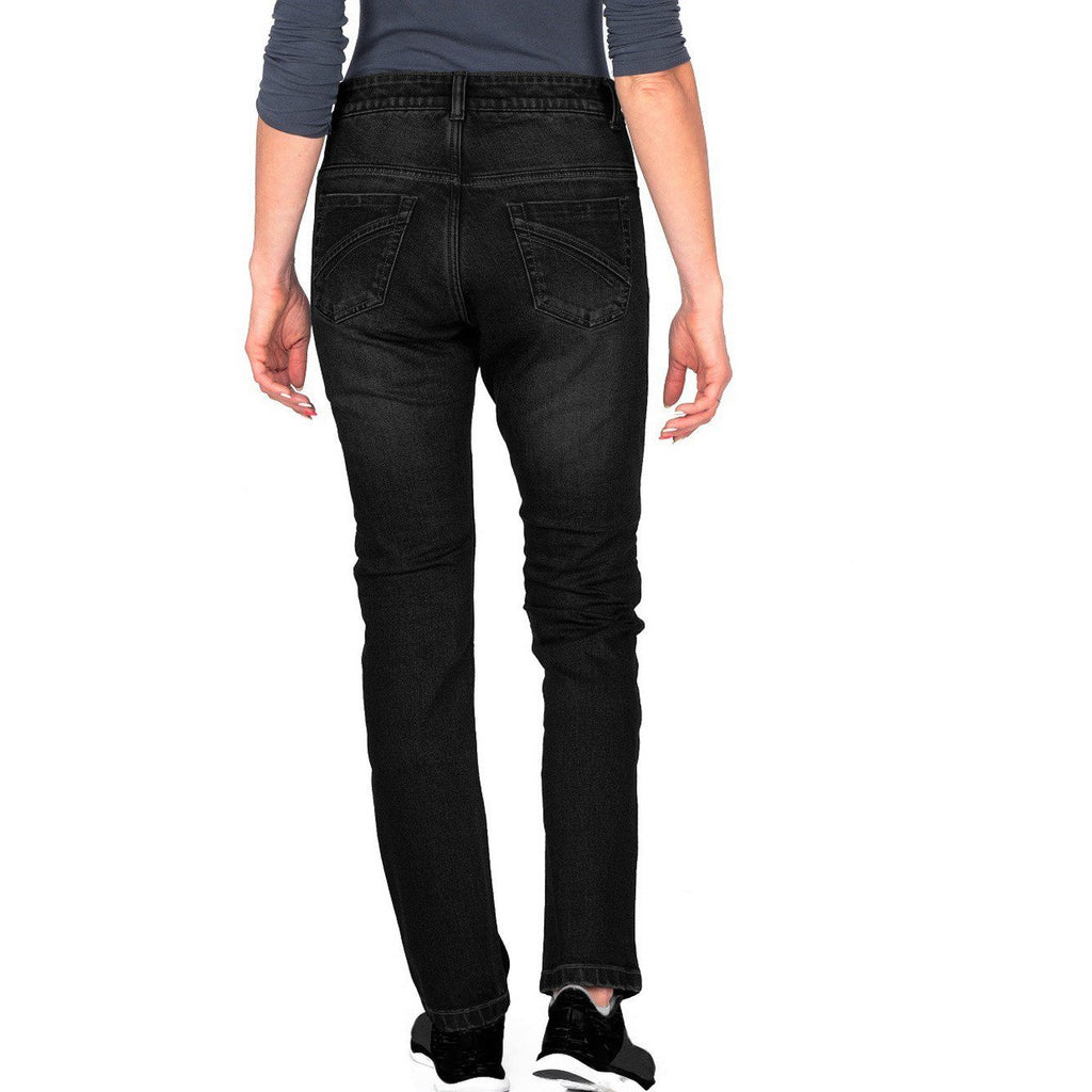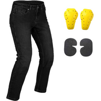 O fată de la oraș prosperă prin stil, confort și siguranță. Acești blugi negri de motociclist le au pe toate trei. Se simt la fel ca perechea ta obișnuită de blugi și sunt confecționați din fibră DuPont™ Kevlar® durabilă (de cinci ori mai rezistentă decât oțelul) cu o rezistență solidă la abraziune. Sunt potriviți pentru călătoria de zi cu zi sau pentru o noapte în oraș!