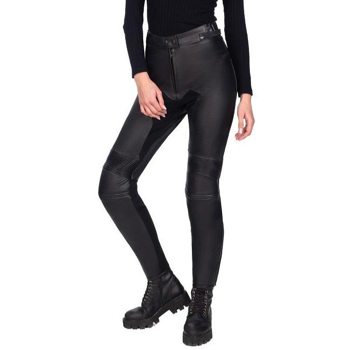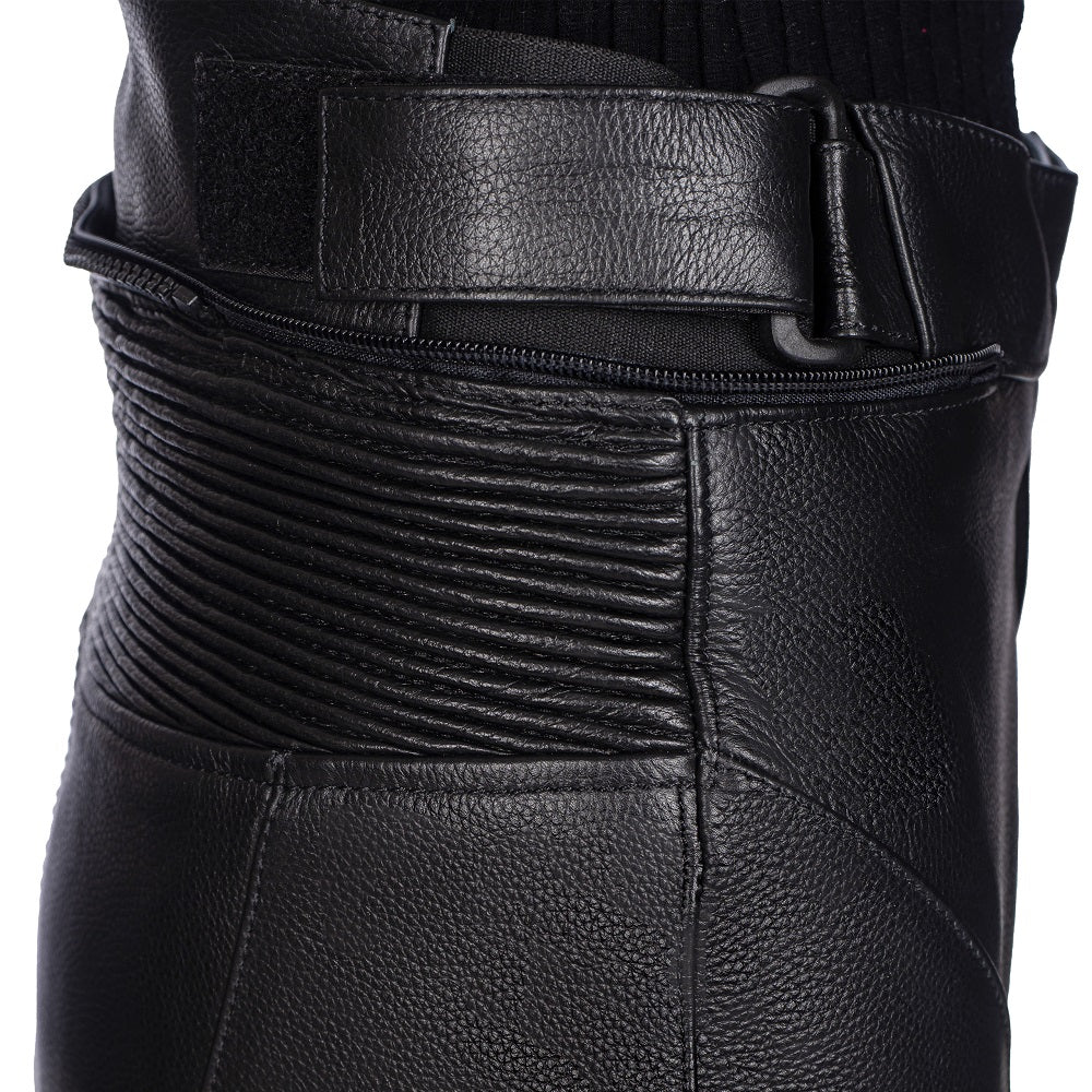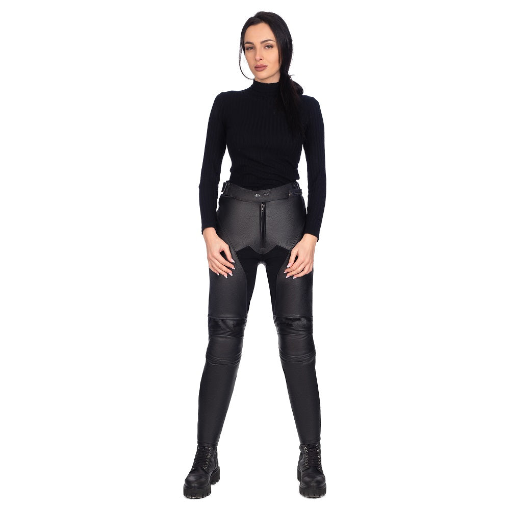 Acești pantaloni din piele neagră sunt complet protejați pentru motociclism și oferă siguranță pe drum! Sunt confortabili, se potrivesc bine și vor întoarce privirile oriunde te-ai duce!