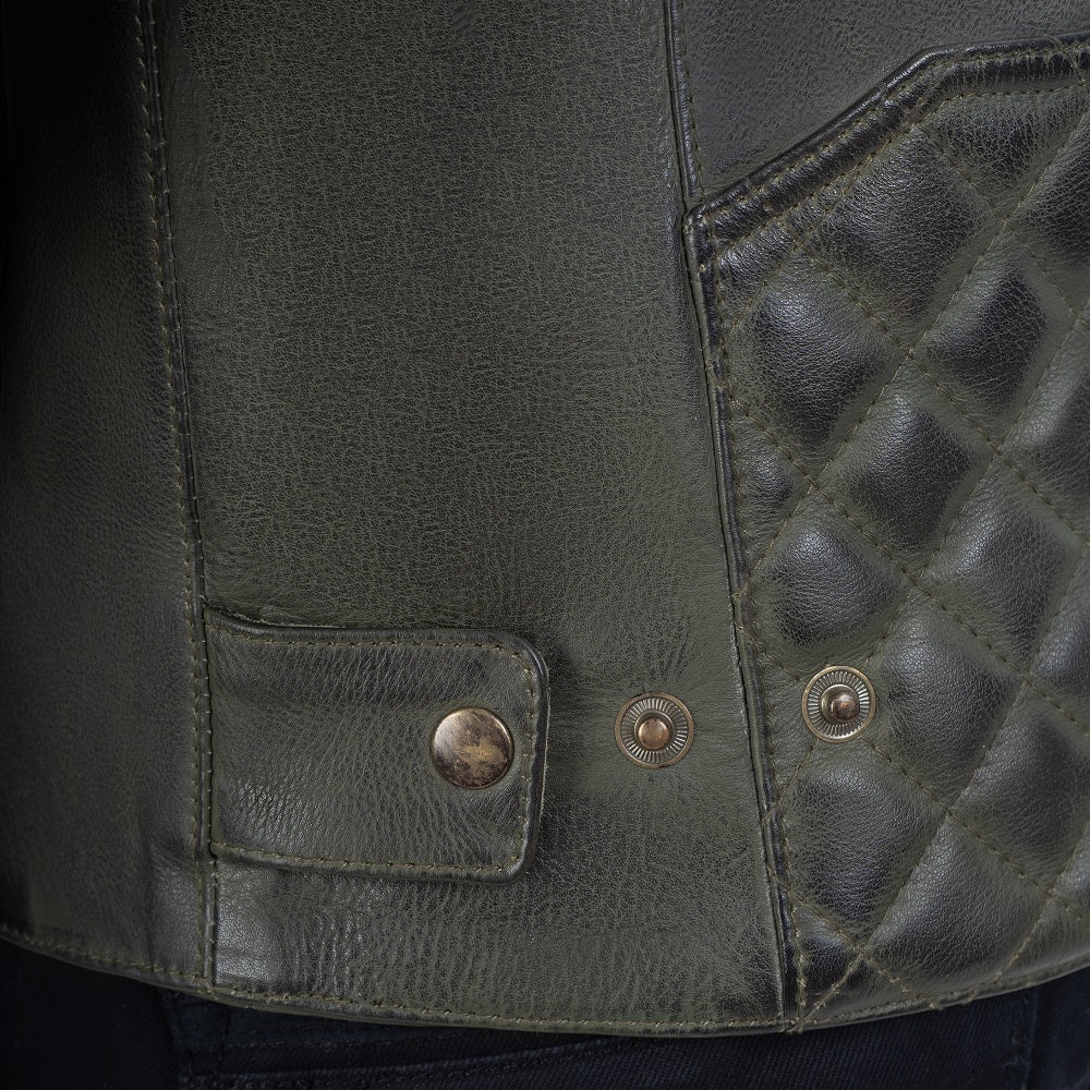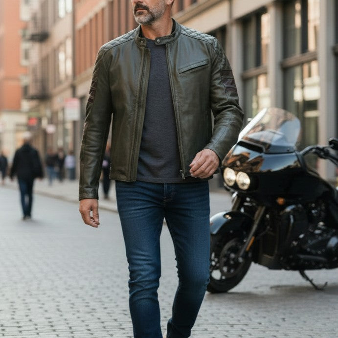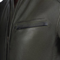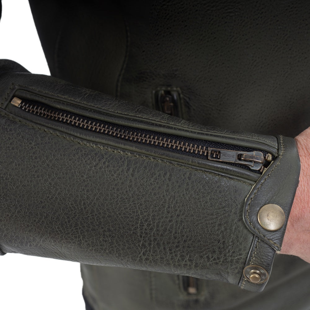 Jachetă din piele super elegantă și foarte confortabilă în verde măsliniu, lucrată manual până la cel mai mic detaliu!