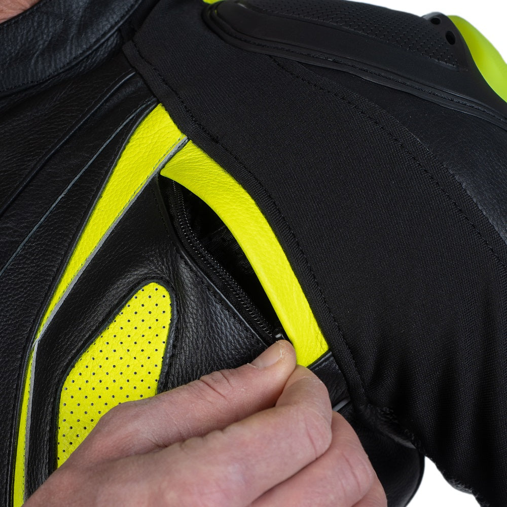 Această jachetă de curse răcoroasă, cu o potrivire confortabilă, este fabricată din piele integrală premium, cu o durabilitate excepțională. Panourile sale parțial perforate contribuie la confortul său pe pista de curse.